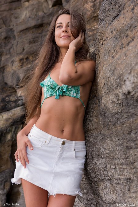 Какой очаровательный вид! Мне очень нравятся и Ваше платье и Ваша киска. Мне жаль, что я не был рядом на той скале с вами.