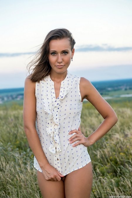 Сара позирует в поле вечером, фотосеты голых природа (81 фото)